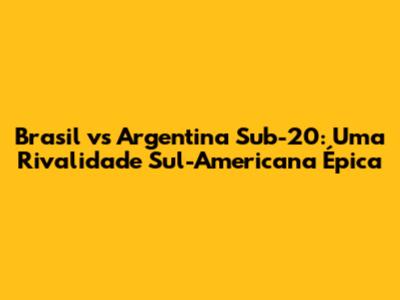 Brasil Vs Argentina Sub-20: Uma Rivalidade Sul-Americana Épica