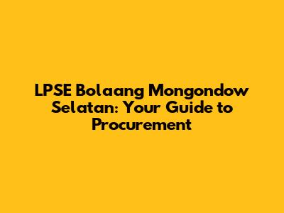 LPSE Bolaang Mongondow Selatan: Your Guide To Procurement
