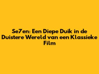 Se7en is niet zomaar een film; het is een ervaring. Het is een film die je aan het denken zet en die je niet snel zult vergeten. Het is een film die de tand des tijds heeft doorstaan en die nog steeds relevant is voor de huidige generatie filmliefhebbers.