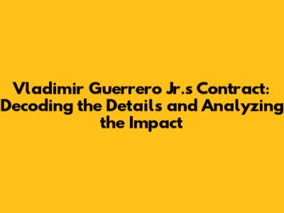 Vladimir Guerrero Jr.'s Contract: Details & Analysis
